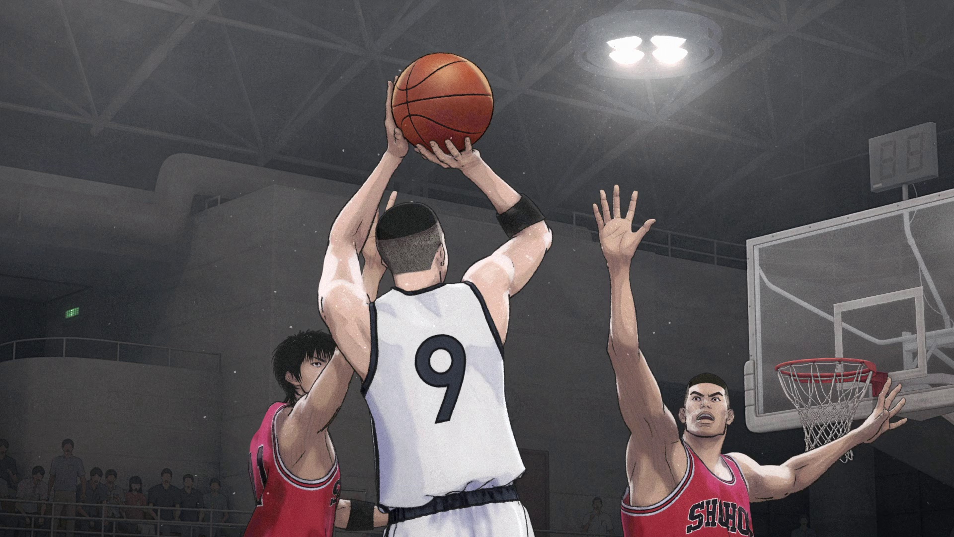 这一天,身材高大,对篮球有着无限执着的赤木刚宪(三宅健太 配音)、从高一起就担任球队主力的超级新星流川枫(神尾晋一郎 配音)、初中时代曾获得MVP荣誉,在高中时代重新拾起了对篮球的热情的三井寿(笠间淳 配音)、身材矮小却拥有着惊人的速度和高超的运球技巧的宫城良田(仲村宗悟 配音),以及高中时代才开始接触篮球,却拥有着强大的爆发力和无限潜力的樱木花道(木村昴 配音),湘北篮球队的这五人终于站上了全国大赛的赛场,他们所要面对的,是日本最强球队山王工业。 和激烈的篮球赛同时叙述的,是宫城良田的一生,他从哥哥那里继承了对篮球的激情和信念,却一直都活在优秀的哥哥的阴影之下。该动画电影由漫画《灌篮高手》的原作者井上雄彦亲自操刀,为所有人的青春画下浓墨重彩的句点。